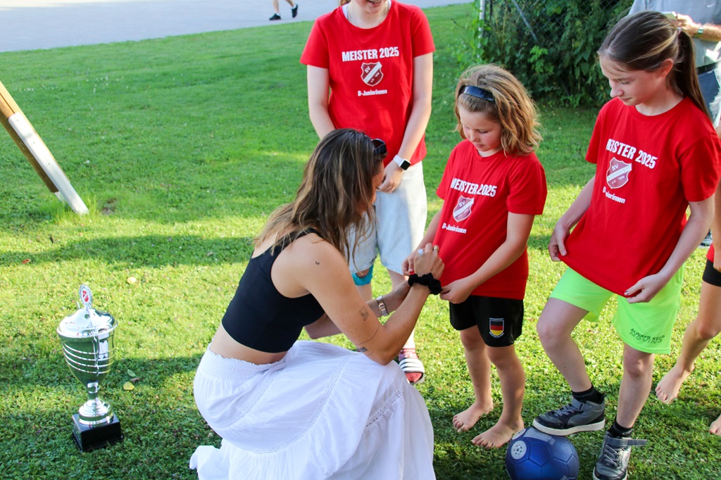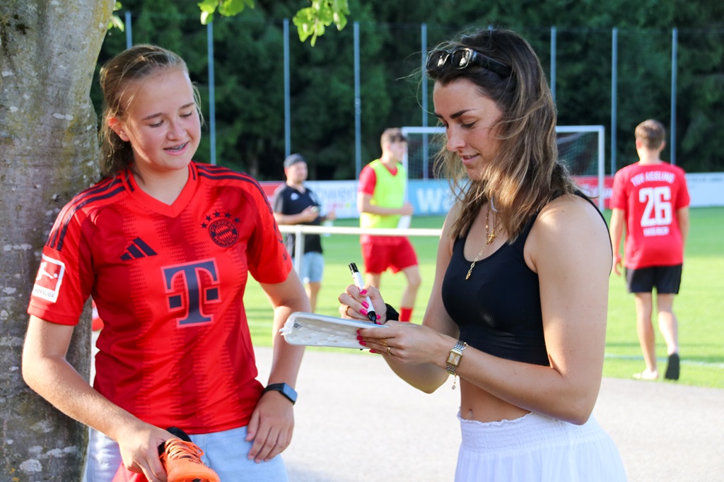 Selina, die ihre fußballerische Laufbahn einst selbst beim SV Schonstett begann, kehrte zurück, um ihre Erfahrungen zu teilen. Die Mädels waren Feuer und Flamme und hatten viele Fragen zu Selinas Alltag als Profispielerin. Selina nahm sich geduldig Zeit für jede einzelne Frage.