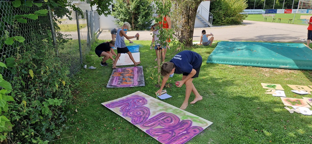 Neben sportlichen Inhalten wie dem Ziel- und Weitschießen auf der Stockbahn, spielerische Übungen im Bereich Tischtennis sowie fußballspezifische Inhalte wie beispielsweise einem Fußballdarts oder einem Parcours, konnten sich die Kids zudem bei der Turnabteilung ihr eigenes Graffiti sprayen.
